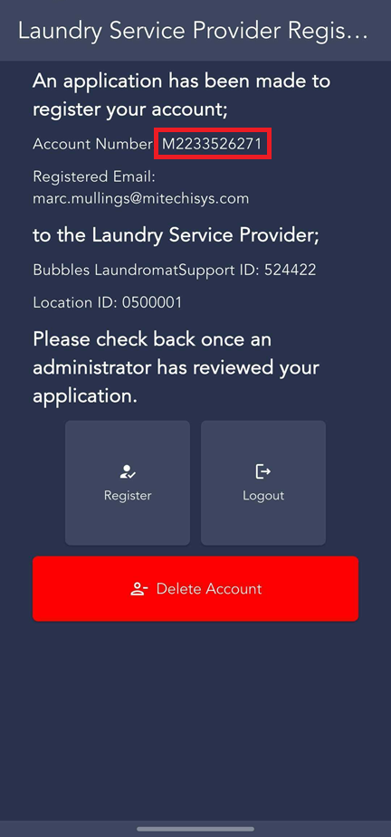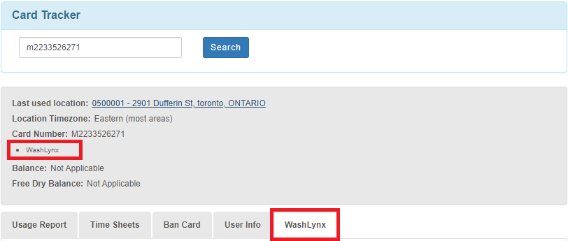 the Card Tracker to look up the newly created WashLynx account number (this will be displayed on the app screen).