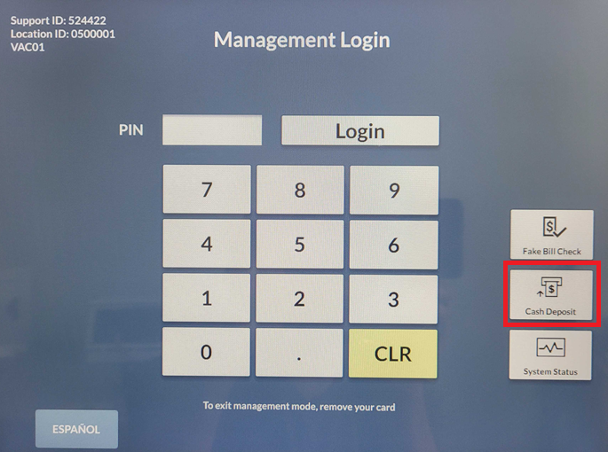 This is the same functionality as the Cash Deposit option you get with a Property Management Card: