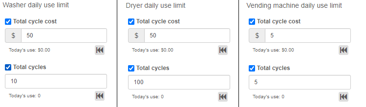 Washer/Dryer/Vending machine daily use limit: