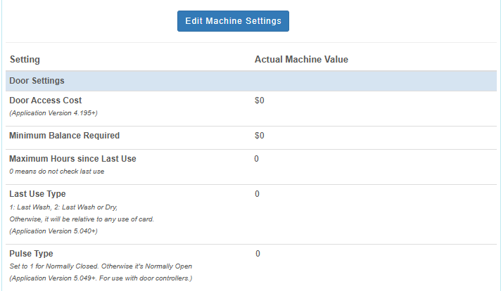 Minimum Balance Required - this setting enforces that a laundry card needs to have a certain minimum balance loaded onto it, if that laundry card is going to work to trigger the door access reader to unlock the door. This setting is set to $0 by default.