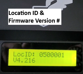 one of the first test screens will indicate what Location ID the reader's currently activated to, as well as what firmware version is currently loaded on the reader: