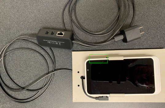 The power brick can then be plugged into any available outlet, on the power bar inside the VAC kiosk.