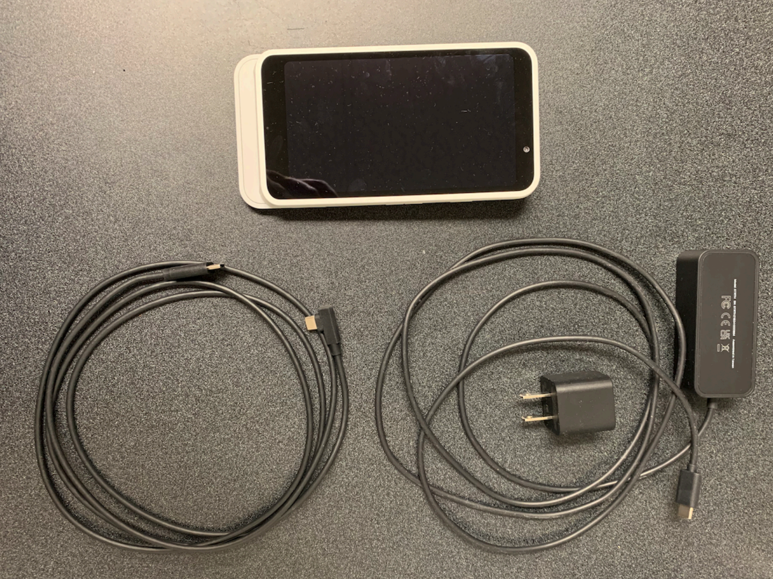 will include an Ethernet Hub, a phone charge style Power Brick, and USB cable with right angel connector: