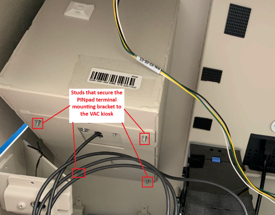 below is a picture showing what the final setup will look like (from the inside of the VAC) once the PINpad terminal has been connected to the VAC kiosk correctly.
