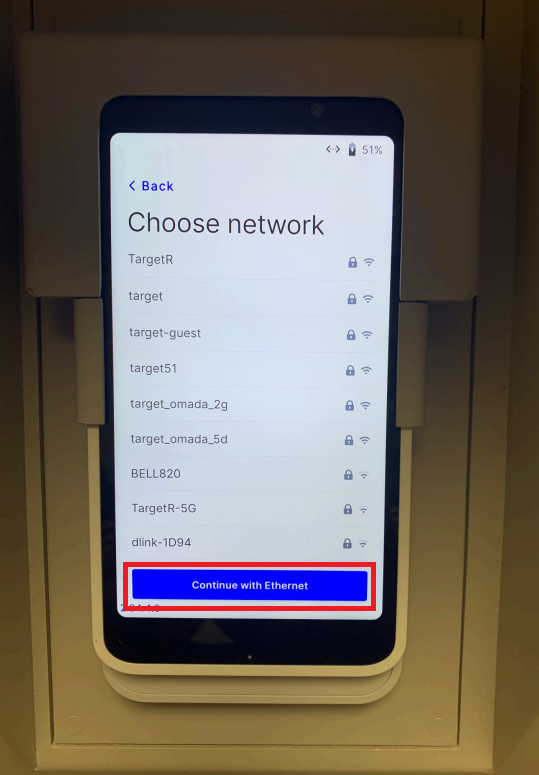 After the VAC reboots, if you're still not seeing the "Continue with Ethernet" option, try rebooting both the VAC kiosk, and the PINpad terminal