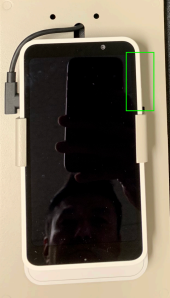 Turn on the S700 PINpad by holding down the power button on the right side (highlighted by the green square in the image below):