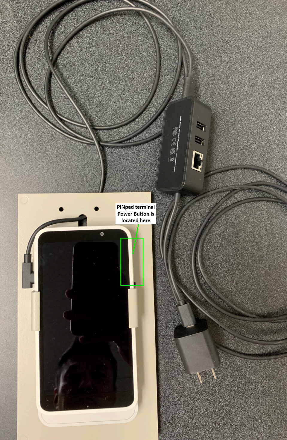 (to reboot the PINpad terminal, press the power button on the terminal and select the reboot option from the power menu that pops up).