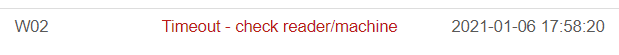 One or more of the readers are reporting Timeout - check reader/machine on the web Portal.