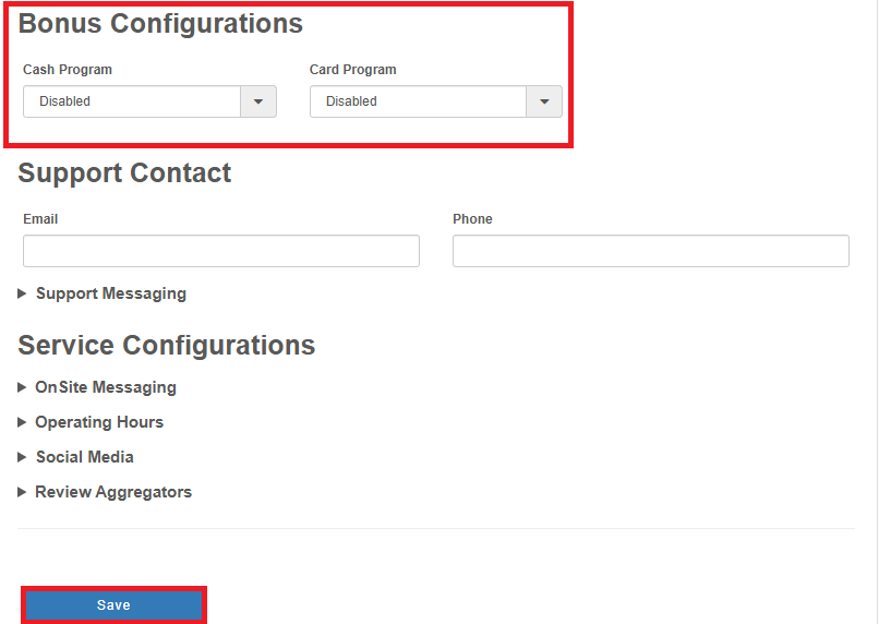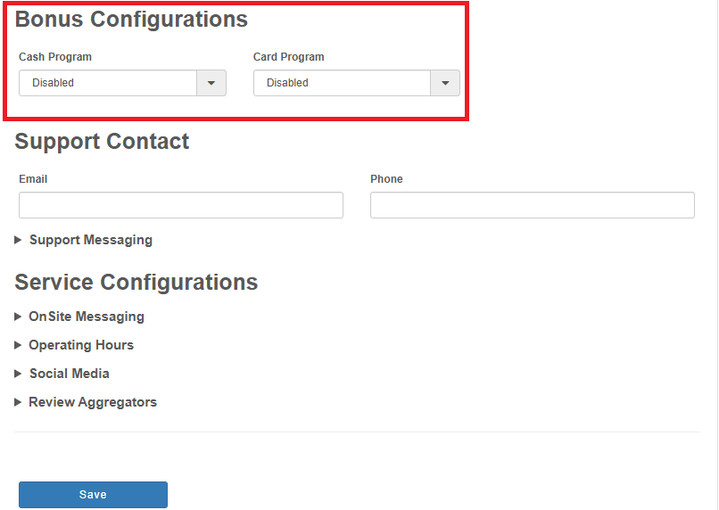 By default, the Bonus Configuration setting will be set to Disabled;