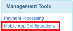 To configure reload bonuses for LaundryCat app users, you'll first need to click into the Mobile App Configuration menu;